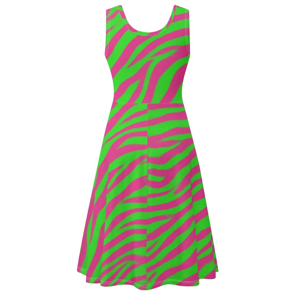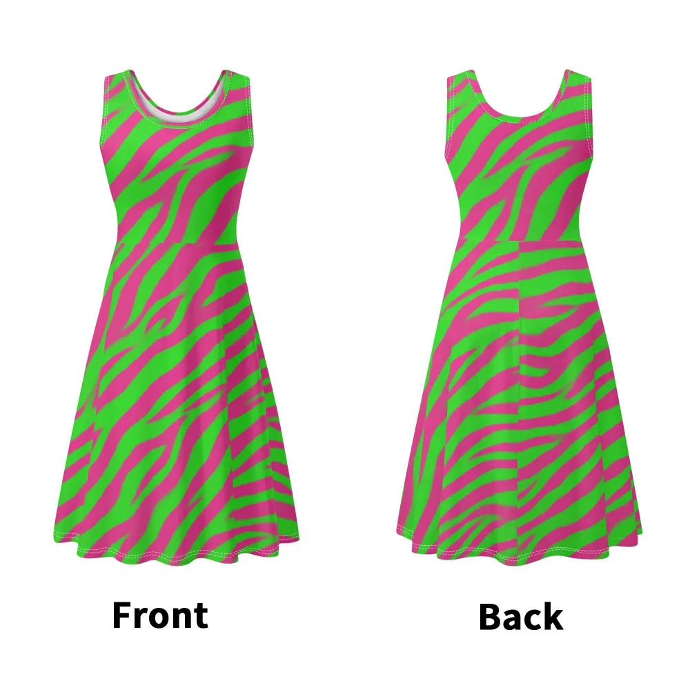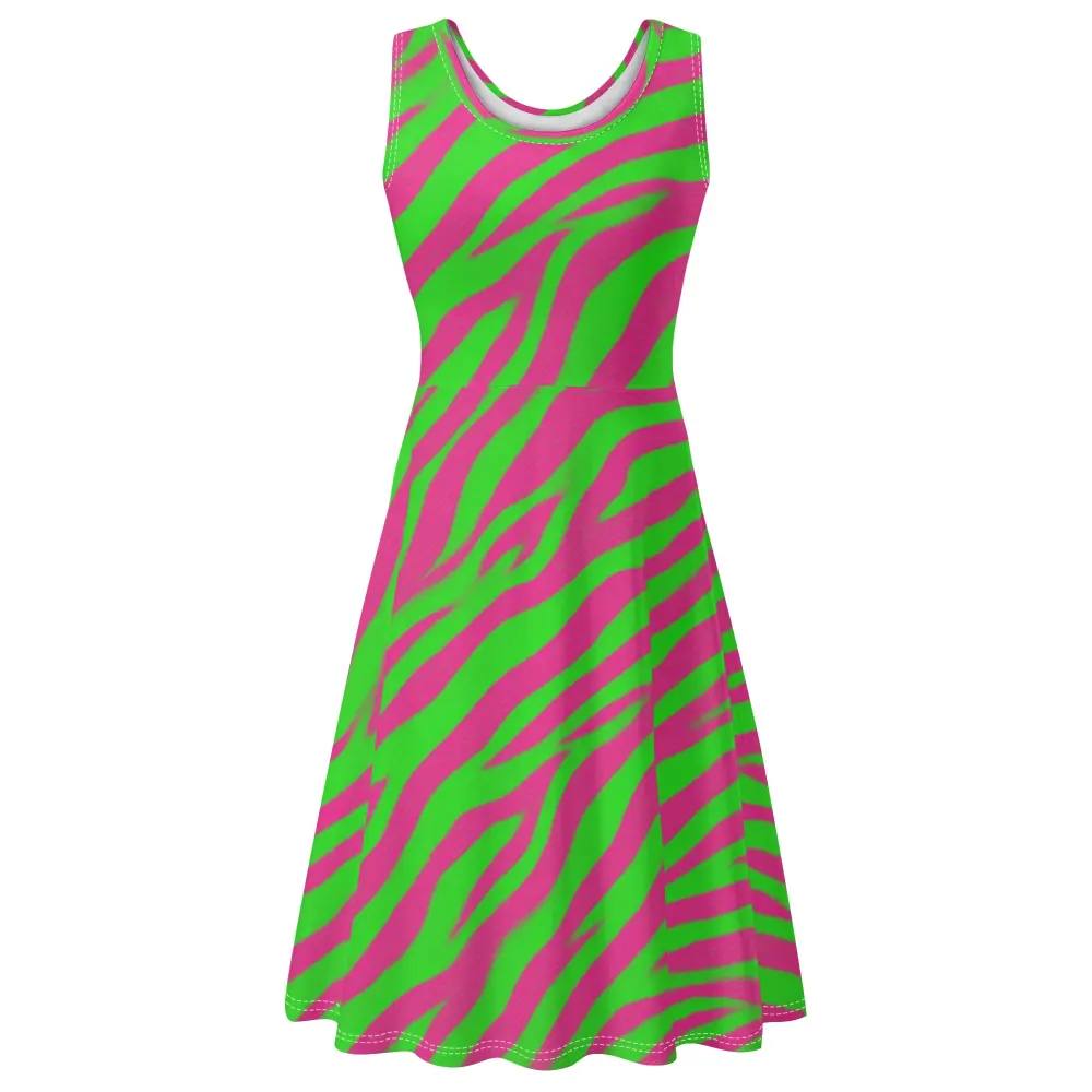 Green-Pink Tiger Stripe Dress – Unleash Your Confidence and Style with Every Step