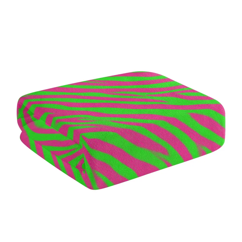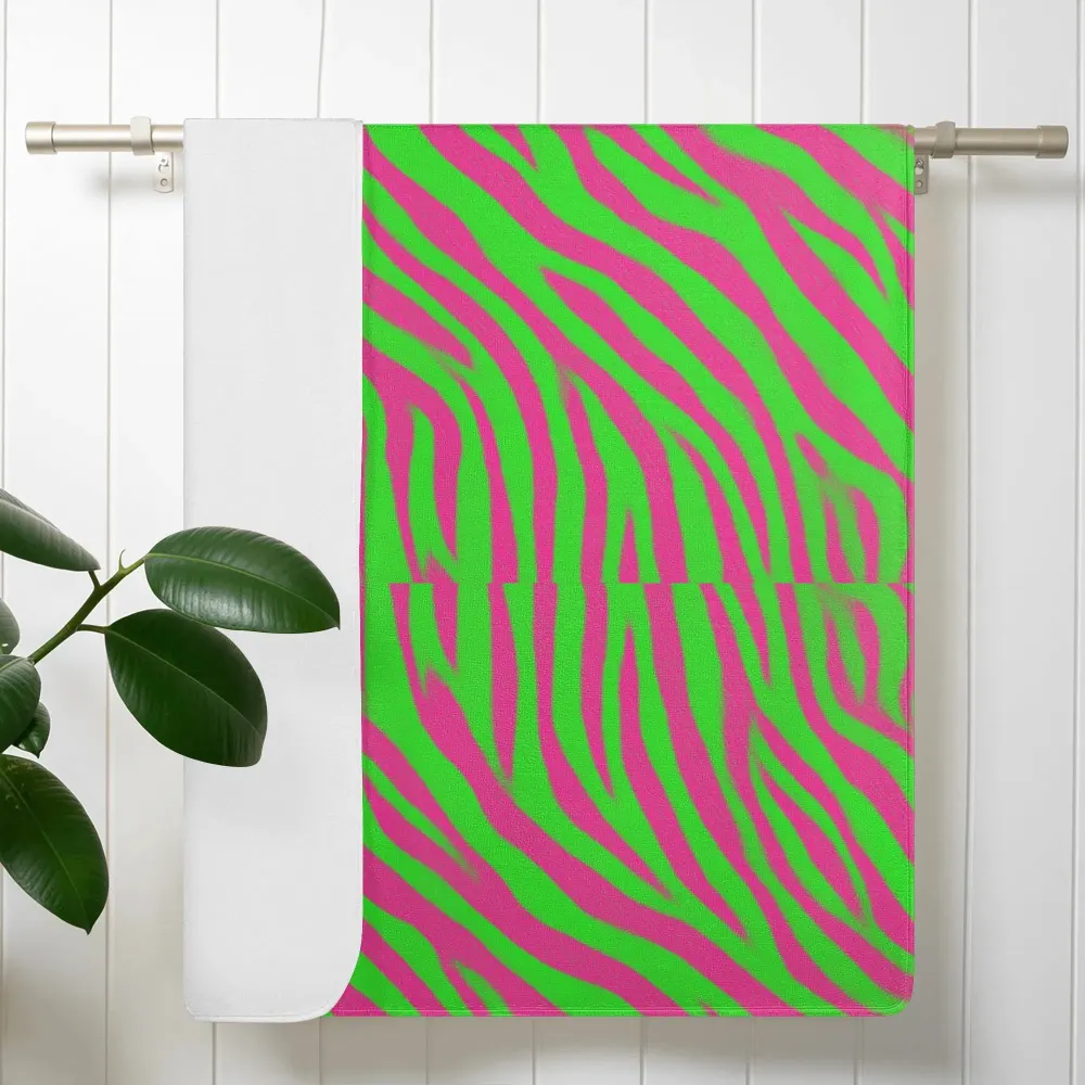 Immerse Yourself in Luxury with Our Green-Pink Tiger Stripe Bath Beach Towels
