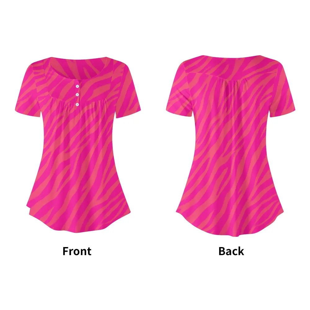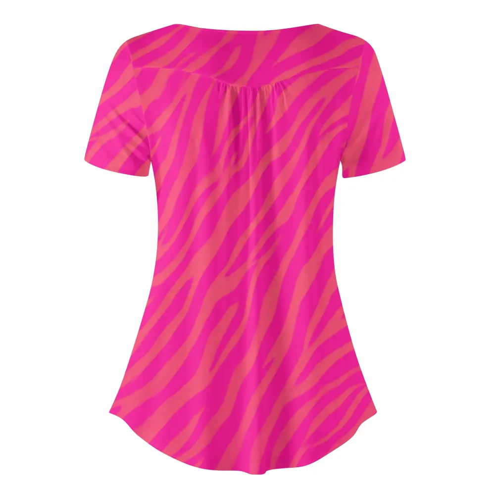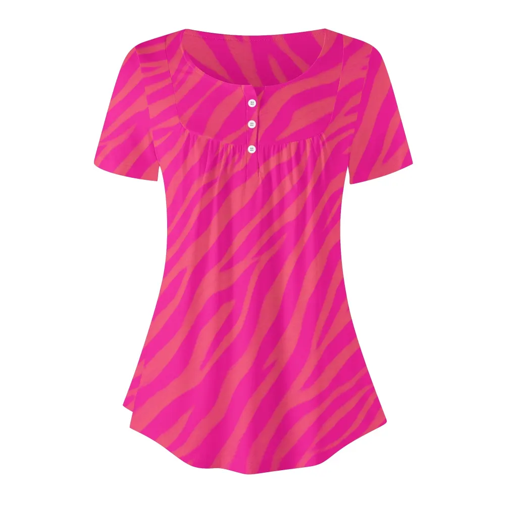 Pink-Orange Loose Women’s T-Shirt with Short Sleeves and Round Neck – Effortless Style for Every Occasion